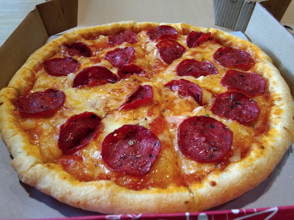 Best pizza in town is their slogan, but it's quite true. Taste better than other joints. The place is not comfortable enough for dine-in though, but maybe that's their concept. I hope they also serve their pizza with tabasco & parmesan.