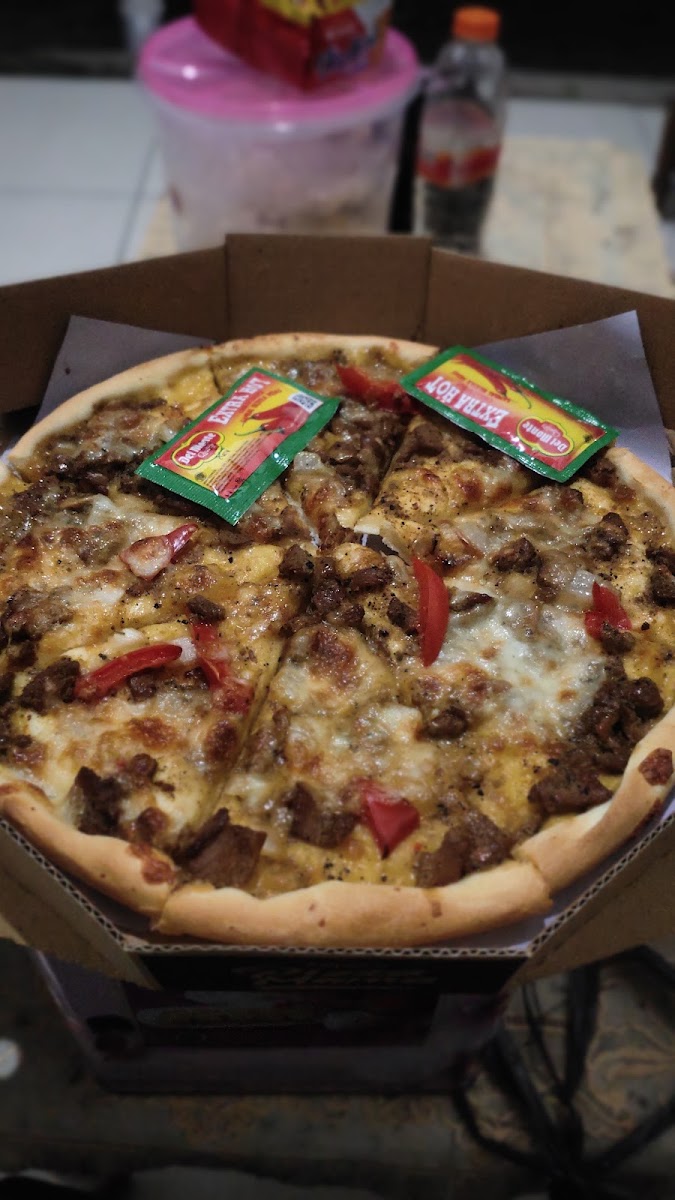 Delicious pizza with affordable price in Bojonegoro My fav's their meat lover