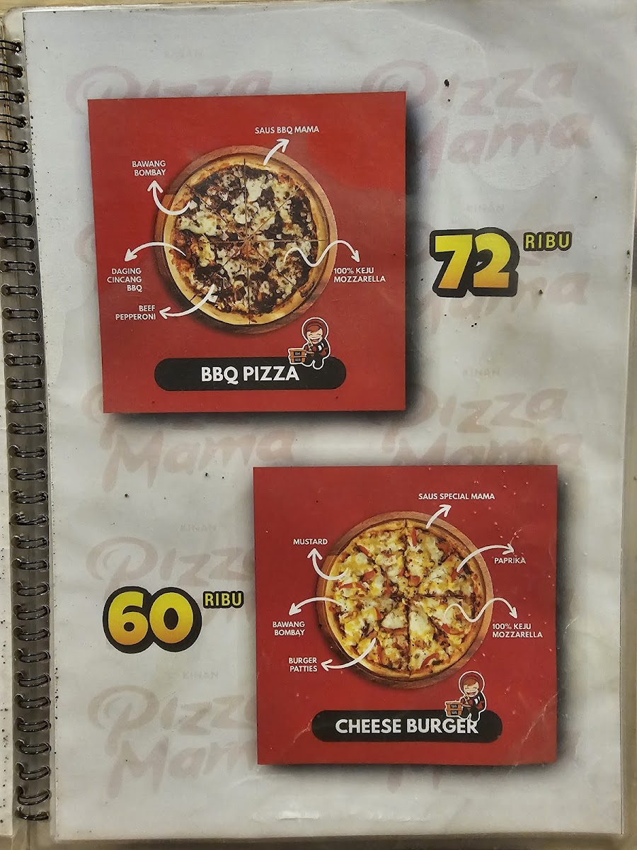 Kinan Pizza Mama also offers delicious calzones, including the Meaty Calz and Cheezy Calz, priced between IDR 25,000 and IDR 27,000. The cozy atmosphere may be modest, but the menu is extensive, featuring tasty options that everyone loves. With the slogan "Best pizza in town," it's no wonder patrons rave about their favorites! Stop by for a delicious, budget-friendly meal that you won't forget!